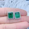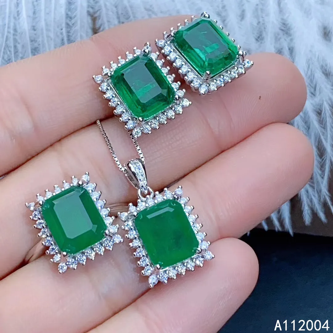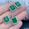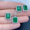 Fine Jewelry 925 Pure Silver Chinese Style Natural Emerald Women's Luxury Classic Rectangle Gem Pendant Ring Earring Set Support