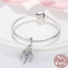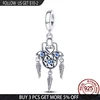 Real 925 Sterling Silver Blue Zircon Feather Hand & Palm Charms Beads Fit Original Pandora Bracelet Bangle Making Women Jewelry