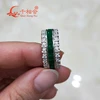 925 silver dark green color 3mm sqaure shape Created Hydrothermal Muzo Emerald with melee moissanite Eternity Band jewelry