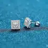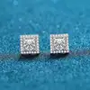 Trendy 1-2ct D Color VVS1 Princess Square Moissanite Stud Earrings Women 925 Sterling Silver Pass Diamond Tester with Gra Gift
