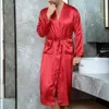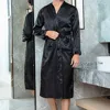 Mens Kimono Bathrobe Silk Satin Pajama Sleepwear Night Gown Robes Long Sleeve Solid Comfort Noble Dressing Gown Men Sleep Robes