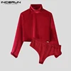 Men Pajamas Sets Homewear Solid Color Velour Sexy Turtleneck Crop Tops Sleepwear & Briefs Two Pieces Men Pyjamas Suits INCERUN