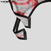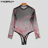 Men Mesh Bodysuit Round Neck Printing Homewear Long Sleeve Cozy Romper 2021 See Through Fashion Sexy Men Bodysuits S-5XL INCERUN