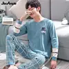 Men's Pajamas Autumn Cotton Long-sleeved Trousers Pijamas 2 Piece 2021 New Loose Plus Size Sleepwear Male Cartoon Nightwear Set