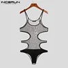 Fashion Men Bodysuits Underwear Mesh Patchwork 2021 Skinny Sexy Pajamas See Through Suspender Irregular Bodysuit S-5XL INCERUN 7