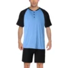 FAKUNTN Men Pajama Set Summer Short Sleeve Tops Shorts Pijama for Men 2 Pieces Lounge Sleepwear Suit Nightwear Male Home Clothes