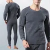 Winter Long Johns Men Thermal Underwear Sets Thin Fleece Solid Color Keep Warm Sauna Men Home Clothes Seamless Pajamas Set