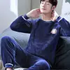 Men's Flannel Pajamas Sets Thick Warm Winter 2Piece/Sets Sleepwear Plus Size Long Sleeve Round Neck Homewear Pyjamas