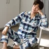 Spring Autumn Pajama Sets Suit Knitted Cotton Casual Long Sleeve Sleepwear Plaid Home Wear Plus Size Comfortable Pajamas For Men