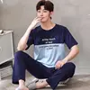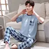 Casual Men Pajamas Set 2022 Short Sleeve Plaid Trousers Homewear Cat Letter Printing Boy Two-Piece Suit Loose O Neck Nightgown