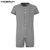 INCERUN Fashion Striped Men Pajamas Playsuit Short Sleeve Button Fitness Homewear Rompers Comfortable Sleepwear Shorts Jumpsuit