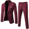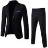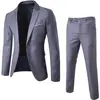 60%HOT 2 pieces/set of large size men's solid color long-sleeved lapel slim button business suit men's casual suit suit