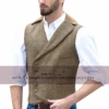 Summer Men's 5 Button Herringbone Tweed Vest Tailored Collar Suit Vests