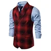 LUCLESAM Men Plaid Design Dress Vest Mens Double Breasted V-neck Suit Waistcoat chaleco hombre gilet homme