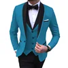 Blue Slit Mens Suits 3 Piece Black Shawl Lapel Casual Tuxedos for Wedding Groomsmen Suits Men 2021 (Blazer+Vest+Pant)