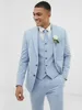 Groom Suit Set Light Blue Wedding Men Suits Wear Tuxedos Coat Dinner Suit Prom Dresses Evening Dress 3 Pieces(Jacket+Pants+Vest)
