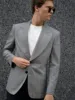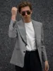 Mens Suit Light Grey Plaid One Piece Jacket Two Button Peak Lapel Business Cusual Formal Wear Groom Coat Wedding Party