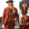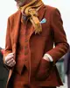 Men's Tweed 3 Piece Set Pointed Lapel Business Slim Fit Jacket Wedding Tuxedo Blazer + Pants + Vest