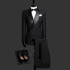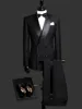 New Arrival Black Shawl Lapel Double Breasted Business Men Suits Leather Collar Custom Made 2 Pieces Wedding Tuxedo For Men