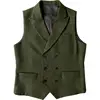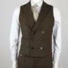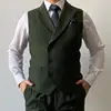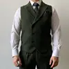 2021 Bristish Green Groom Vests Double Breasted Brown Wool Herringbone Tweed Groomsmen Vest Mens Suit Prom Wedding Waistcoat