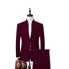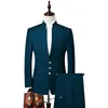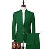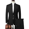 New Design Navy Blue Men Wedding Suits Stand Collar Slim Fit Groom Tuxedos Male Dress Formal Prom Best Man Blazer 2 Pieces Set