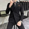 OIMG Men's casual suit British style double-breasted suit suit two-piece suit groom male dress