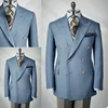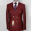 Men Suits Two Pieces High Quality Yellow Custom Made Handsome Cotton Wedding Suits Gold Metal Two Button Formal Coat+Pant
