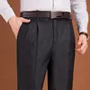 Double Pleated Dress Trousers Men High Waist Loose Business Casual Suit Trousers Middle-aged Mens Suit Pants Men Dress Pants