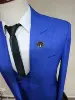 2022 Peaked Lapel Custom Made Wedding Tuxedos Slim Fit Male Suits Three Piece Royal Blue Men Suits (Jacket + Pants + Vest)