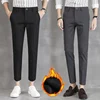 2021 New Men's Winter Plus Velvet Warm Trousers Men's Korean Casual Pants Slim Fashion Black Gray Trousers Men