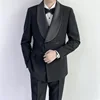 Buckle Designer Black Men Suits Formal Slim Fit Custom Made Blazer Gtoomsmen Fashion Prom Party Casual 2 Pieces Suit Sets