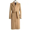 Khaki Woolen Men Overcoat With Belt Thick Warm Plus Size Custom Made Long Coat Casual Formal Business Prom Party Male Jacket