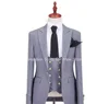 3Pcs Light Grey Jacket Pants Vest Custom Made Peak Lapel Blazer Trousers Man's Party Wear Wedding Suits Set Coat+Pants+Waistcoat