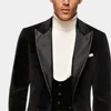 2021 New High Quality Custom Black Velvet Design Men's Suit Peak Lapel Wedding Fashion Tuxedo 3 Piece Set(Jacket + Pants + Vest)