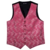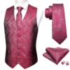 Barry.Wang Red Paisley Waistcoat for Men Slim Suit Vest Silk Vest Necktie Set Handkerchief Cufflinks Formal Vest for Business