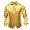 Hi-Tie Silk Mens Vests Shirts Set Jacquard Gold Black Red Blue Waistcoat Shirt Neck Tie Hanky Cufflinks for Men Wedding Business
