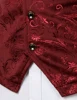 Mens Red Paisley Bronzing Vest Single Breasted V-Neck Wedding Suit Vests Men Gothic Aristocrat Steampunk Victorian Gilet Homme