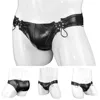 Men Sexy Underwear Faux Leather Briefs Low Waist Pouch Underpant Bandage Bikini Boxers Shorts Exotic Convex Pouch Sexy Lingerie