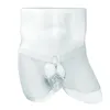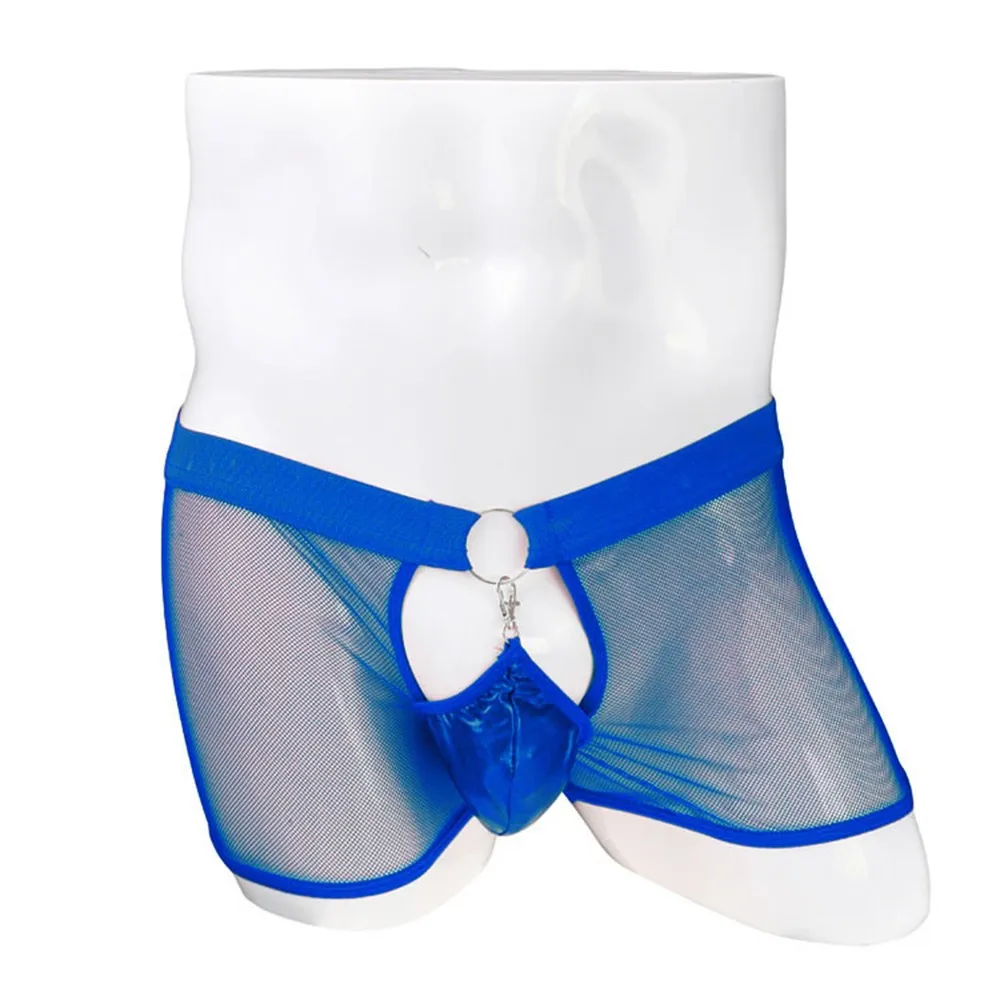 Men's Sexy Mesh Transparent Brief Open Penis Underwear Man Mid-Waist Panties Man Breathable Underpant Metal Buckle Hollow Boxer