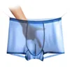 Men Sexy Boxer Briefs Thin Transparent Underwear Ice Silk Breathable Shorts Comfortable Trunks Male Underpant