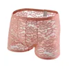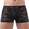 Low Rise Sexy Mens Sheer See Through Boxer Briefs Underwear Lace Shorts Underpants Sexy Lingerie Erotic Cuecas Masculinas 2021