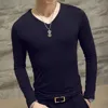 Long Sleeve T-Shirt Man Solid Spring Casual Sleeve V-neck Top Men Spring Casual Top Solid Color Pullovers Fashion Slim Basic Top