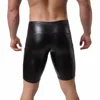 Men Pu Leather Boxershort Fashion Mid-Waist Black 5-Point Pants Men Punk Motorcycle Trouser Black Pant Male Tight Leather Pant