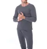 Men's Thermal Underwear Suit Plus Velvet Thick Tops Solid Clothes Long Sleeve Warm Clothing Male Pants Round Neck Tops+Trousers