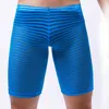 1pc Men's Boxer Shorts Stripe Mesh Underpants See Through Half Panties Lounge Underwear Sexy Lingerie