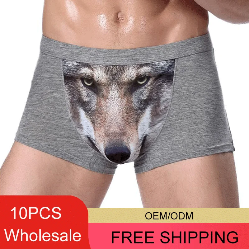 Wholesale Cotton Men Underwear Boxer Shorts XXXL XXXXL Seamless Elephant Underpants for Homme Male Plus Size Panties with Wolf