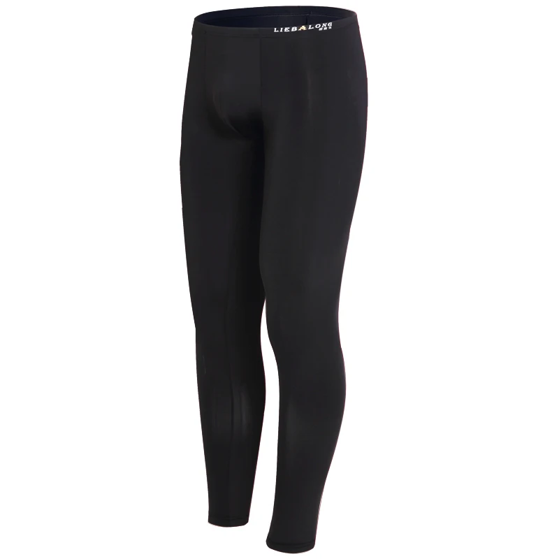 Sexy Male Leggings Tights High Elastic Bulge Pouch Sexy Long Johns Ultra-thin Ice Silk Translucent Long Pants Thermal Underwear