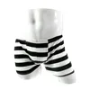 Men Sexy Big Stripe Underpants Comfortable Black White Large Size Boxer Briefs Underwear Slip Sexy Thin Stretch Cotton Underpant
