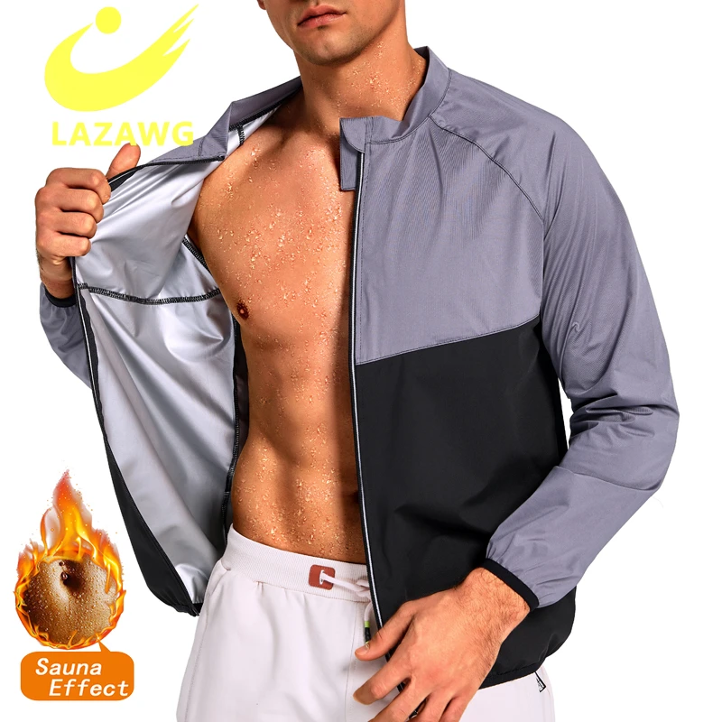 LAZAWG Mens Sauna Sweat Tops Body Shaper Zipper Waist Trainer Vest Male Weight Loss Fat Burner Workout Slim Shirt Thermal Suit