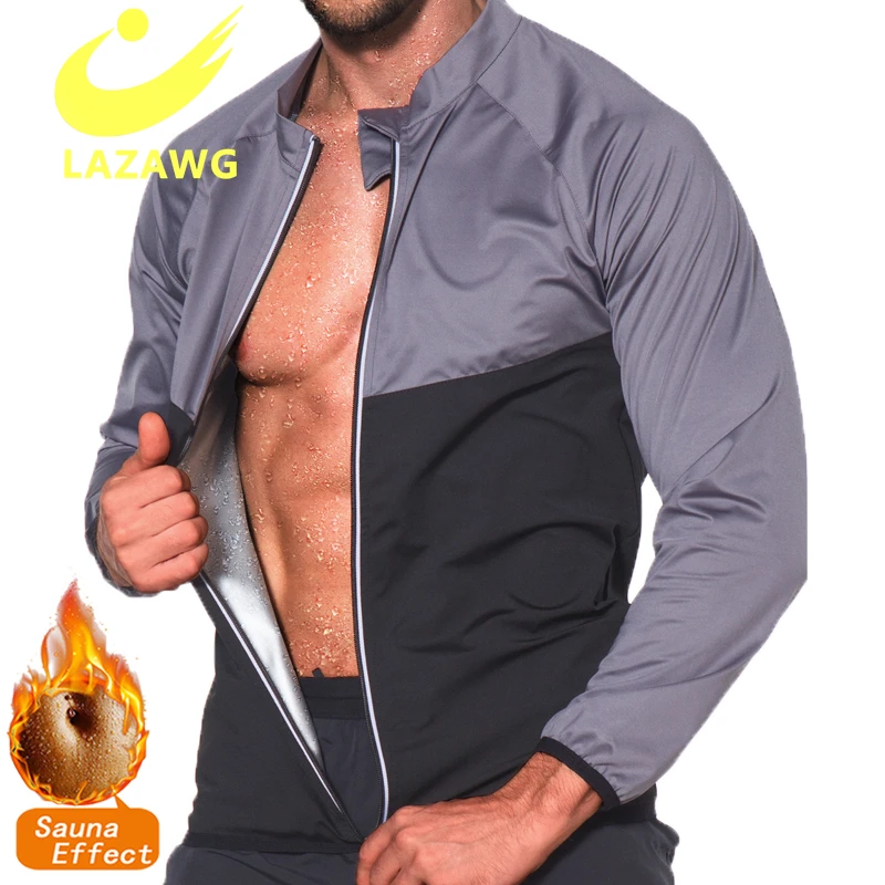 LAZAWG Hot Sweat Sauna Shirt Men Body Shaper Zipper Waist Trainer Vest Gym Fitness Weight Loss Fat Burner Workout Slimming Tops